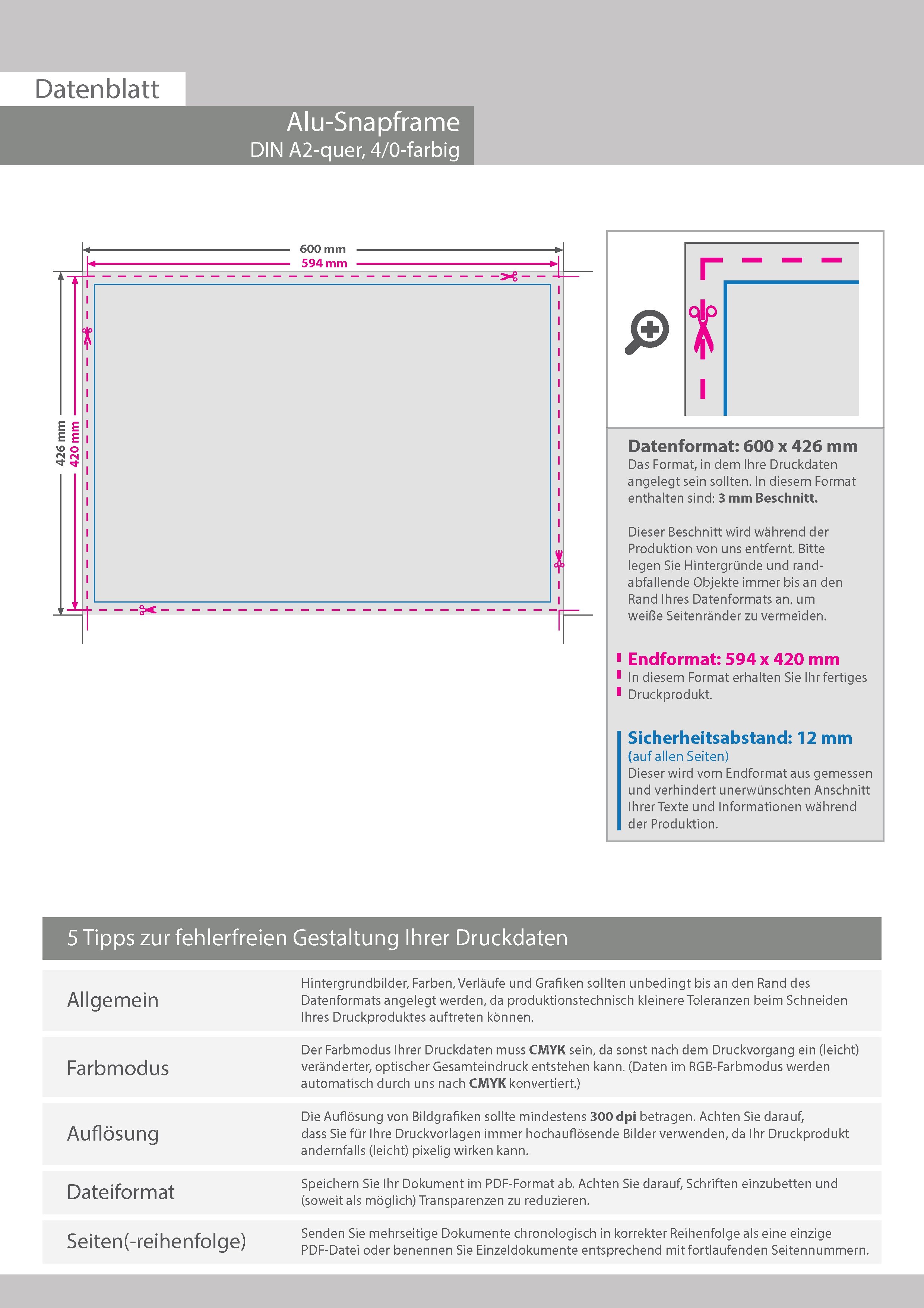 Alu-Snapframe für A2 quer (594 x 420 mm) inklusive Druck 4/0-farbig